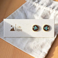 This medium sized earring style features laser cut wood pressed into a brass cabochon with stainless steel posts. All earring posts are lead, nickel, and cadmium free. The wood has been sealed with multiple layers of high grade spray varnish to protect it from the elements.