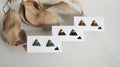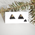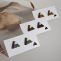 We are so excited for the release of our new "Aria" stud. This simple geometric triangle stud is available in a rich cinnamon, blue sage or black speckled color adorned with gold foil...sure to be an instant fav!